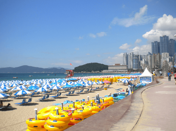 열정적인 여름에 젊은 이들이 모이는 해운대.