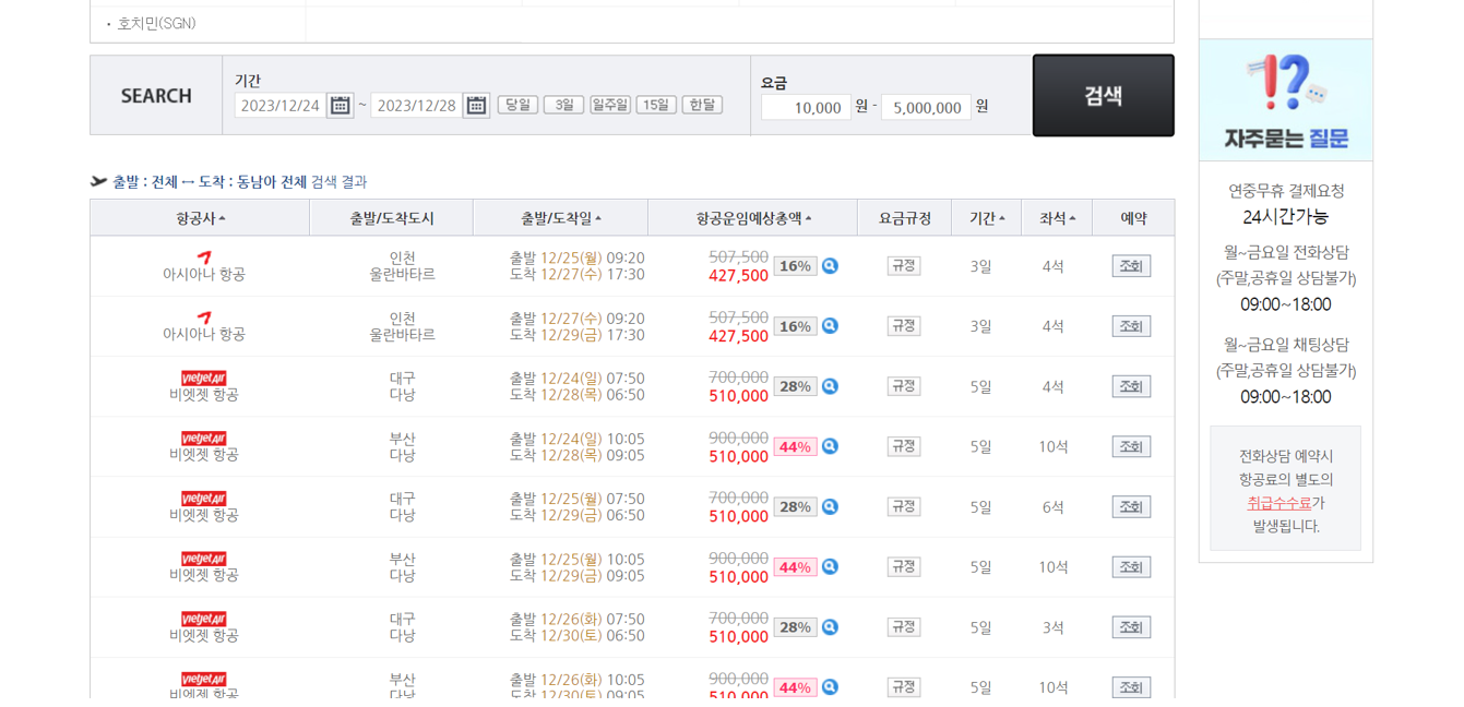 개인적으로 항상 직접 서칭하여 힝공권 구매를 진행하고 있어서 해당방법을 추천드립니다.