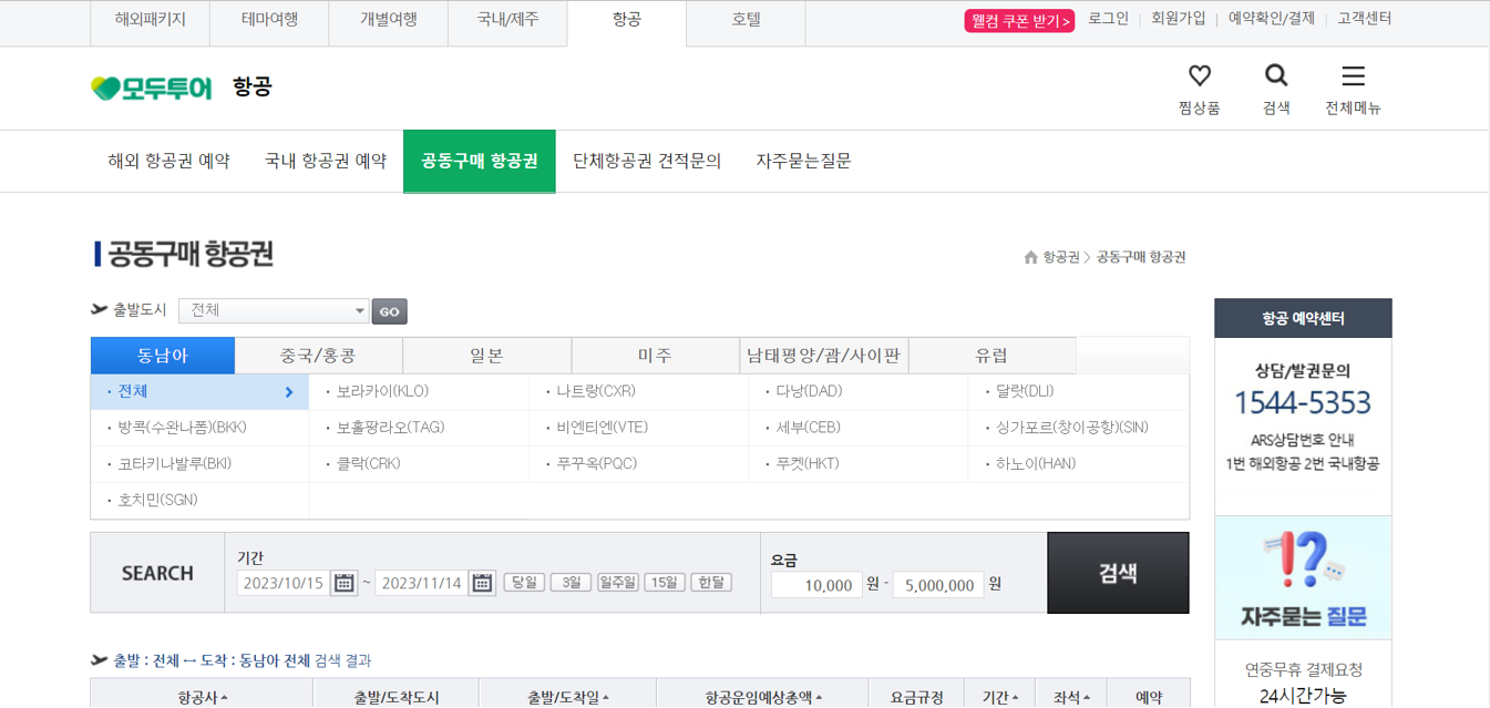 모두투어 공동구매항공권은 아래 그림과 같습니다.