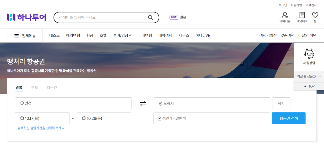 3. 하나투어 땡처리항공권