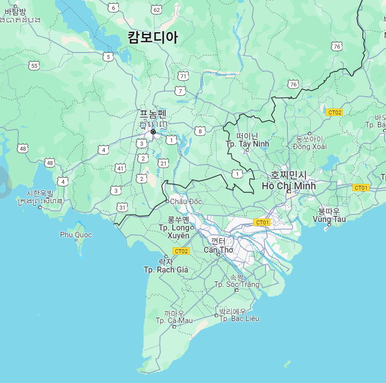 지도를 보시면 알시겠지만, 푸꾸옥은 캄보디아와도 가까운 거리에 있는 섬입니다. 베트남 껀떠와 캄보디아 프놈펜 간의 거리가 유사할 정도입니다. 현재는 베트남 섬이며, 예전부터 휴양지로 많이 사용되었습니다.