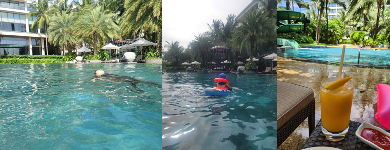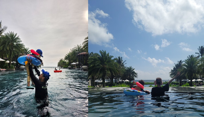 - 수영장은 두 개 있습니다. (엄밀히 따지면 세 개) 어린이 수영장이 별도로 있고, 인피니티풀도 있습니다.