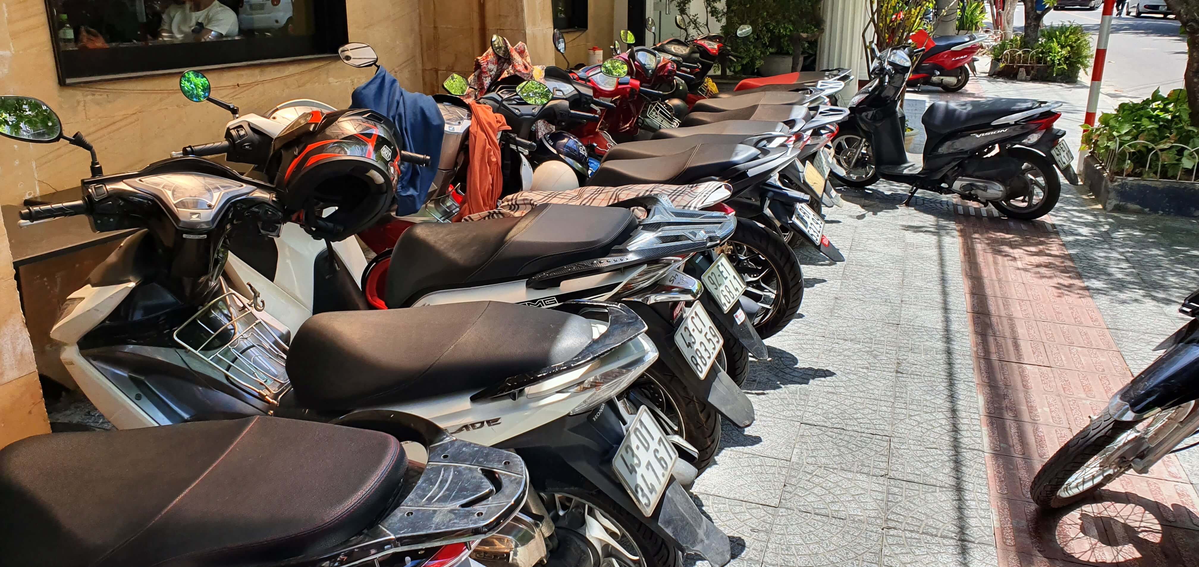 오토바이가 즐비하게 있는게 동남아의 흔한 풍경을 보여줍니다.