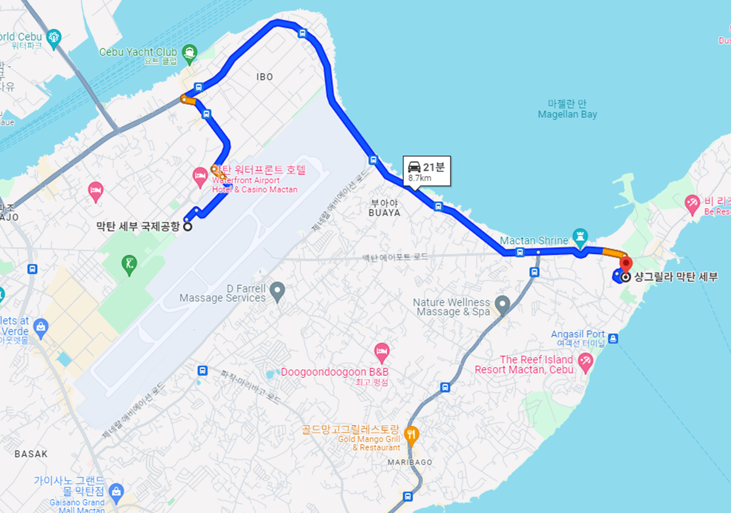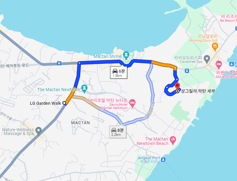 막탄공항도 25분여 정도 소요되어 그렇게 멀지 않은 편입니다.