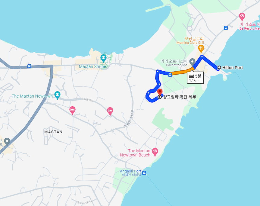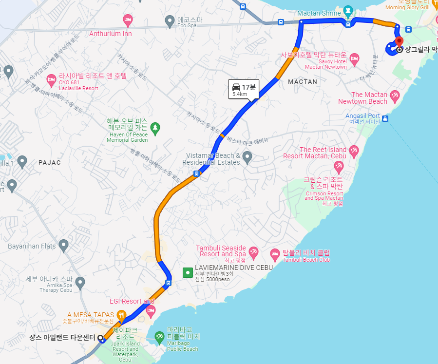 아래 지도를 보시면 아시겠지만, 샹그릴라는 막탄섬 아래에 자리잡고 있습니다.